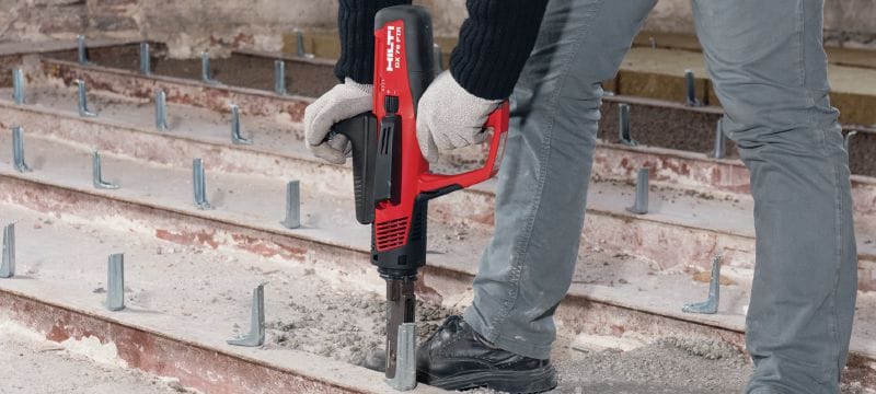 - Pritrjevanje betonskih plošč na konstrukcijsko jeklo, za premagovanje strižnih sil in dvig strižne nosilnosti pri kompozitnih konstrukcijah