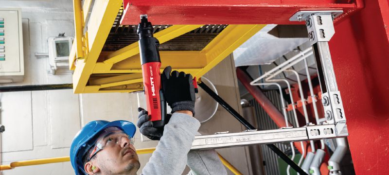 • Pritrjevanje nosilcev za cevi na jeklo, nosilcev za kabelske police na jeklo