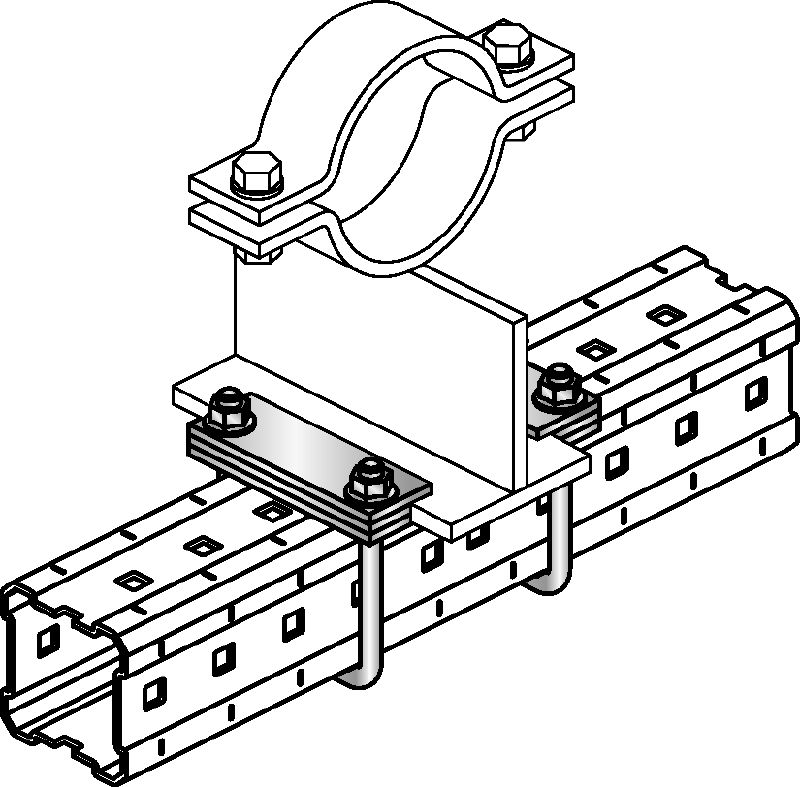 - Del modularnega štiridelnega sistema za podpiranje kabelskih polic, cevi in drugih pomožnih jeklenih konstrukcij