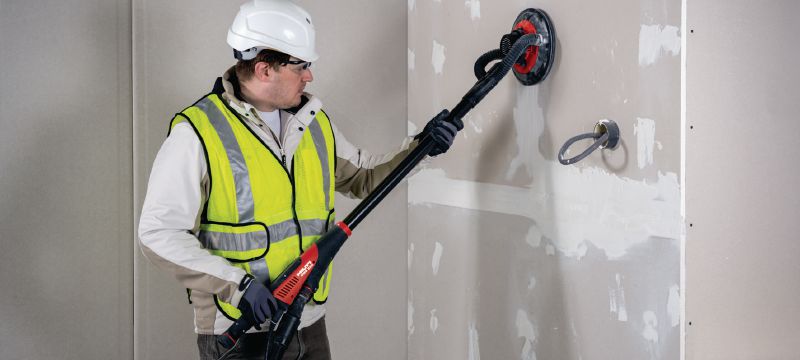 - Končna obdelava stropov in sten iz mavčno-kartonskih plošč – z uporabo podaljška droga (priložen) za brusilnik z dolgim vratom ne boste potrebovali lestev in gradbenih odrov