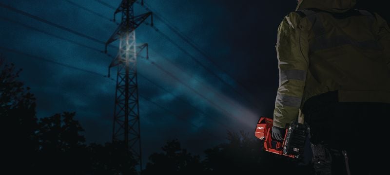 Baterijska LED luč z zmogljivim dolgosežnim žarkom in 3 načini (reflektor, široki reflektor in kombinirano) za osvetlitev delovnih območij (baterijska platforma Nuron)